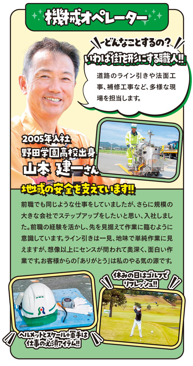 交通安全施設工事、塗装工事、区画線工事、法面工事、橋梁補修工事、トンネル補修工事等